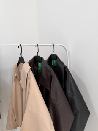 مشابه جکت چرم از برند پول اند بیر / جنس رویه چرم باکیفیت/ دوجیب کاربردی داره / کمربند خور/ استایل باکسی