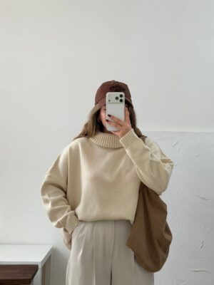 سایز دقیق: قد ۶۳ / دور سینه ۱۵۰ / قد آستین از یقه ۷۴