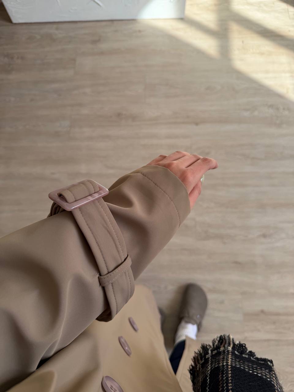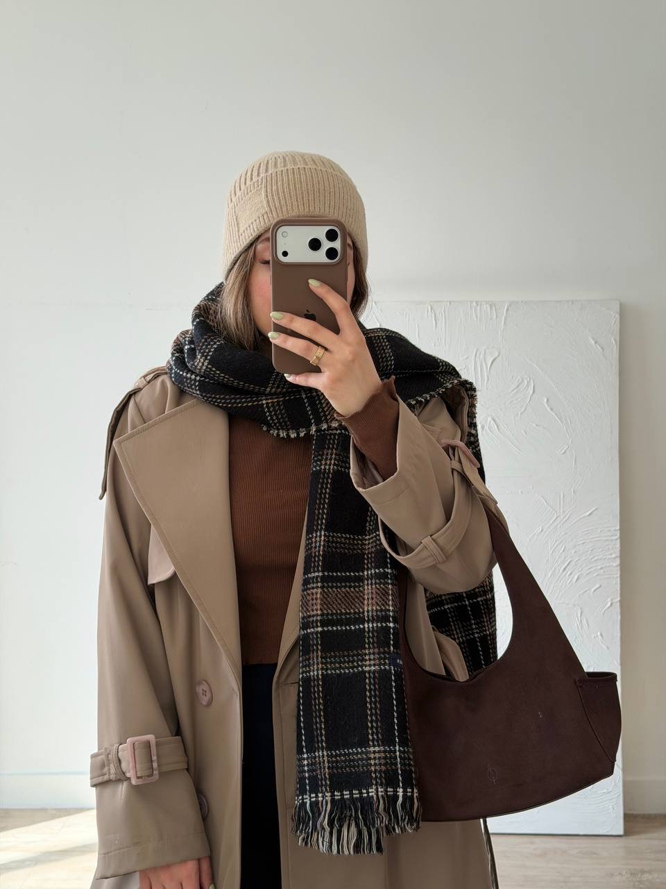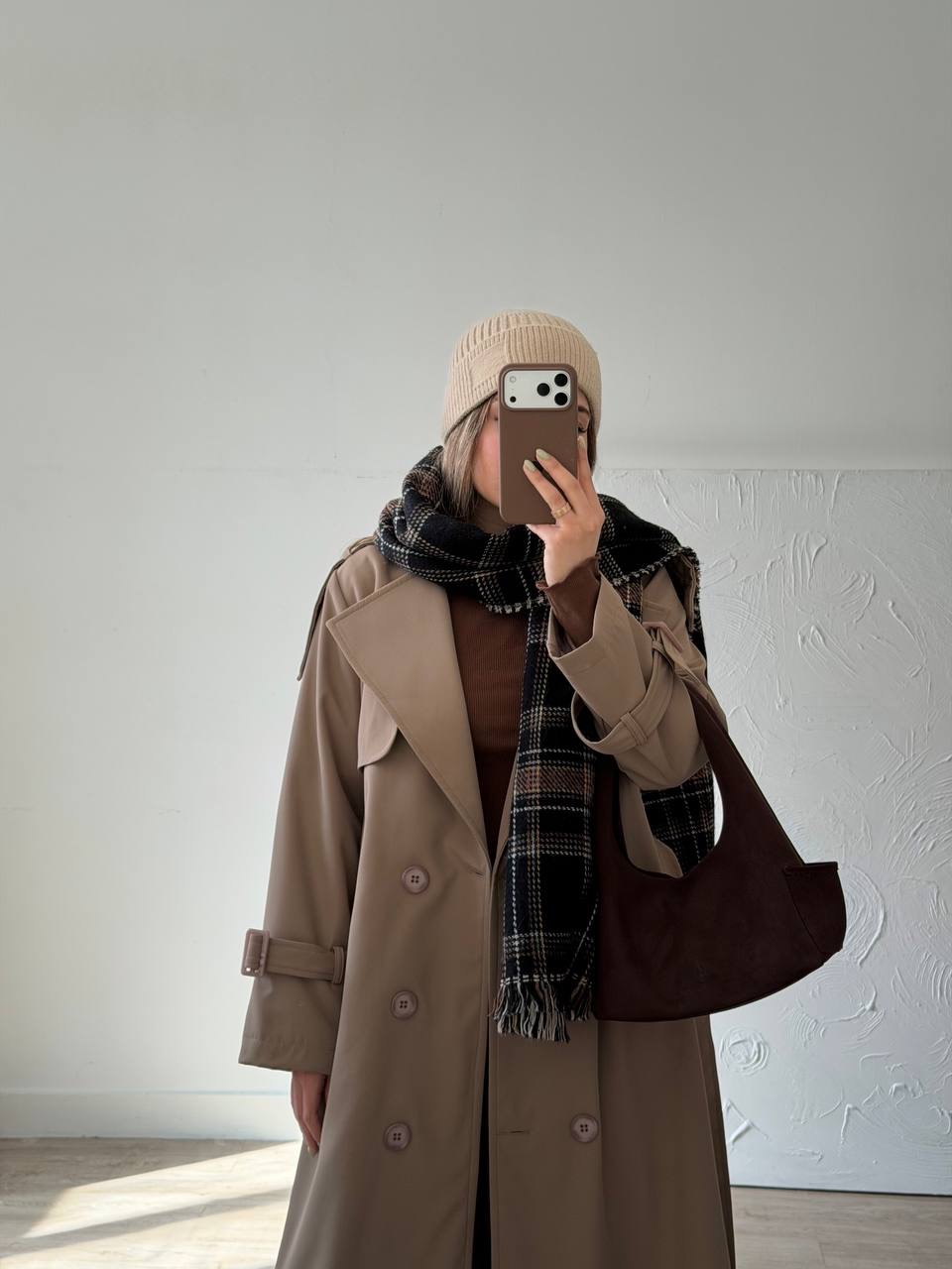 رنگ نسکافه ای / جنس رویه سانتانا / تماما آسترکشی شده / ضدآب / کمربندخور / جیب کاربردی داره / چاک دار