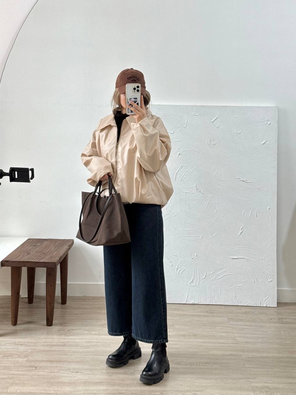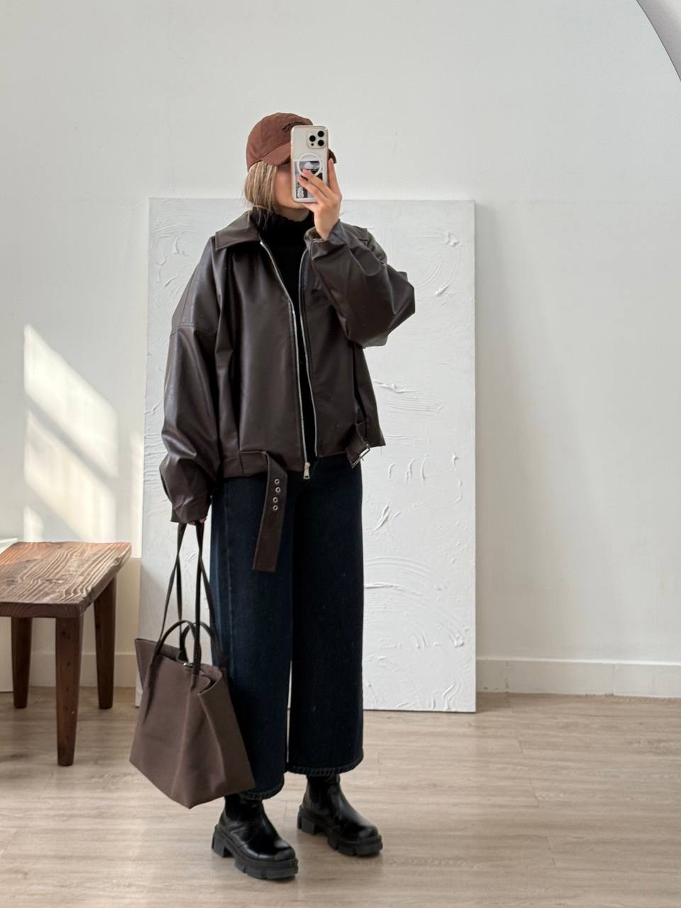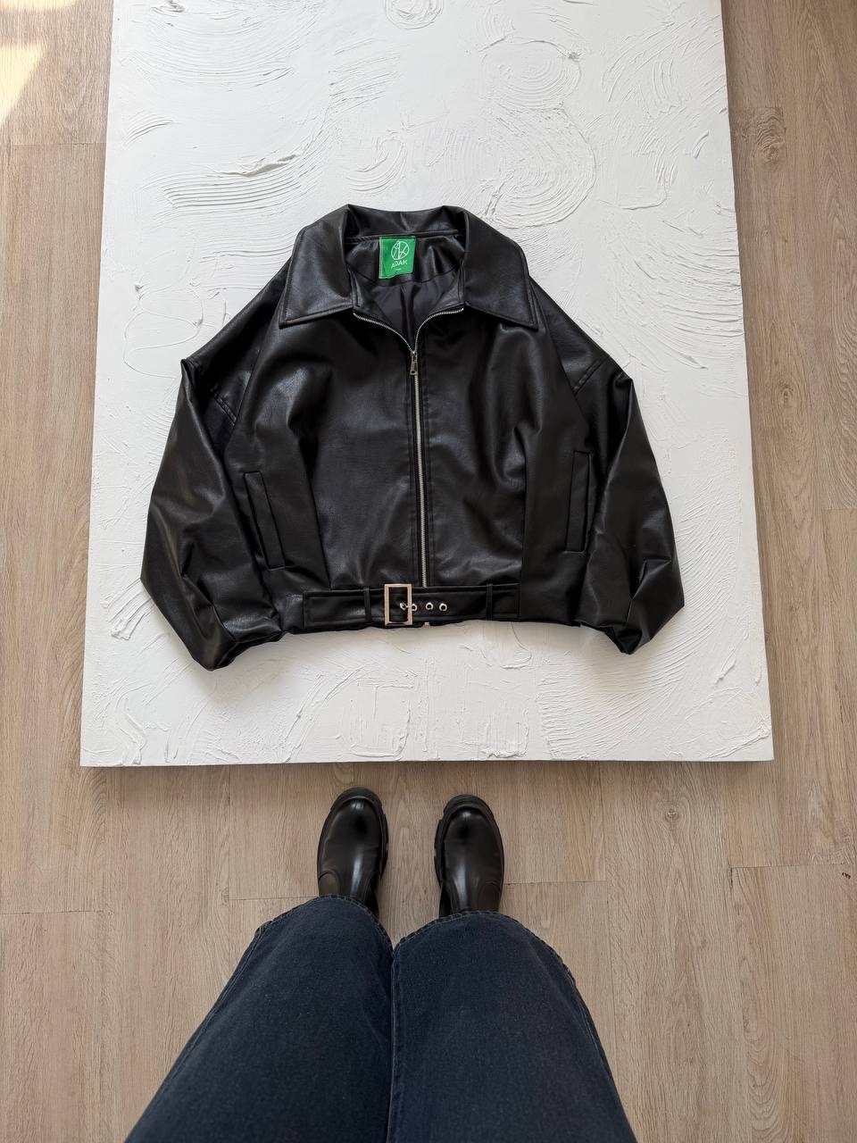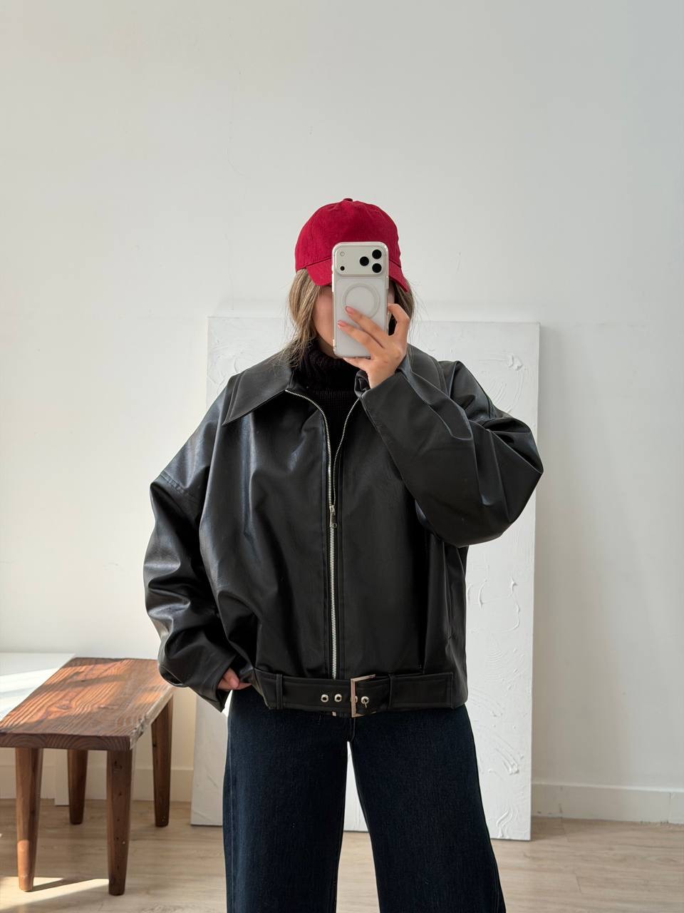 مشابه جکت چرم از برند پول اند بیر / جنس رویه چرم باکیفیت/ دوجیب کاربردی داره / کمربند خور/ استایل باکسی