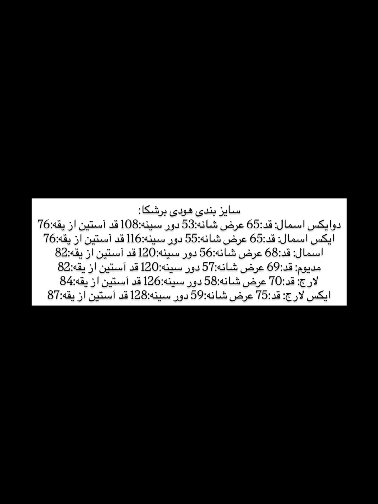 | سایز | XSmall, XXSmall, Small, Medium, Large, XL |